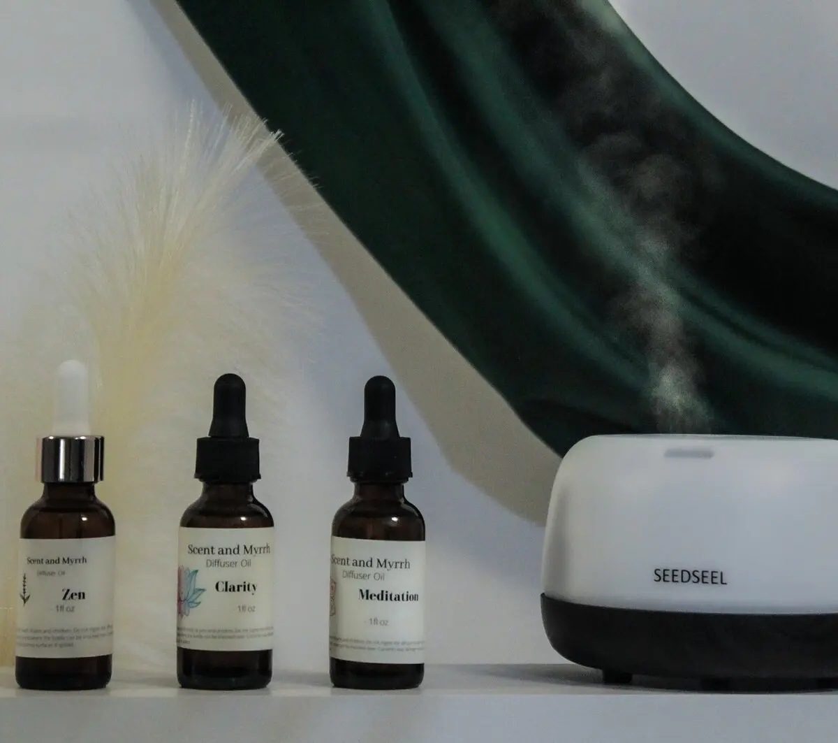 Hand-poured candles, wax melts, incense, and diffuser oils.